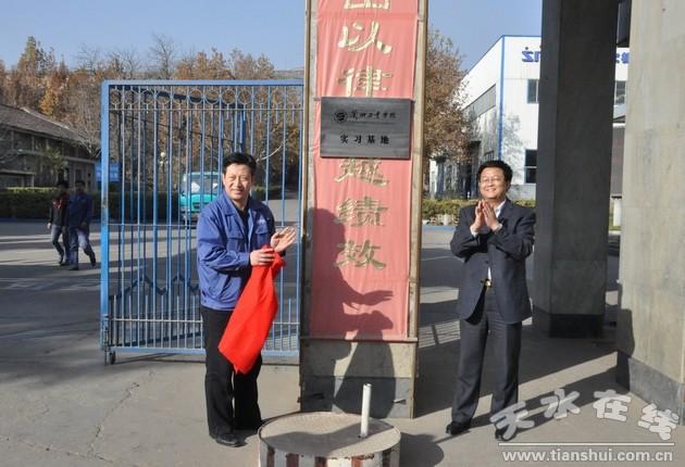 座談結(jié)束后,星火機床公司領(lǐng)導(dǎo)及蘭州工業(yè)學(xué)院領(lǐng)導(dǎo)共同參加蘭州工業(yè)學(xué)院實習(xí)基地揭牌儀式。劉勝、魏軍分別代表企業(yè)和院校揭牌。