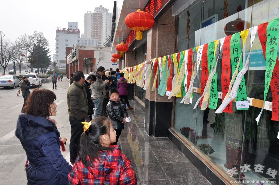 兩天來,有近萬余人次參與了有獎燈謎競猜活動,市民每猜對一道謎題,均可獲得由甘肅銀行提供的精美禮品一份。既活躍了市民文化生活,了解了更多傳統(tǒng)文化習(xí)俗,也展示了甘肅銀行秦州支行的精神風(fēng)采和企業(yè)文化內(nèi)涵,彰顯了羲皇故里的文化底蘊(yùn)。