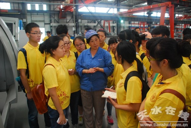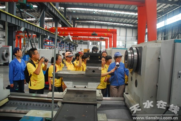 參觀實踐過程中,星火機床公司教培中心教師孔慶蘇、詹蘇向各位學員全面介紹了企業(yè)發(fā)展變化、企業(yè)管理、企業(yè)文化、機床原理、性能、功用等方面的知識。每到一處,學員們個個聽的專心,看的仔細,問這問那,不停的用手中的筆記錄著老師講解的點滴知識。帶隊老師介紹說,此次,陜西師大理工科基礎(chǔ)教學部組織2013屆學員開展“探尋輝煌·重走絲路”暑期社會實踐活動,就是讓古絲綢之路輝煌文化在學員的心中留下深刻的印象。他說,去年9月,習總書記在訪問中亞幾國中鄭重提出“建設(shè)新絲綢之路經(jīng)濟帶”的戰(zhàn)略構(gòu)想,宏圖遠大,志向高遠。新絲綢之路經(jīng)濟帶,東邊牽著亞太經(jīng)濟圈,西邊系著發(fā)達的歐洲經(jīng)濟圈,被認為是“世界上最長、最具有發(fā)展?jié)摿Φ慕?jīng)濟大走廊”,承載的不僅是絲綢之路的復(fù)興,也是西部夢開始的地方。星火機床是我們“探尋輝煌?重走思路”社會實踐的第一站,學員們首次在星火看到了一個嶄新的現(xiàn)代企業(yè)裝備機械制造全過程,相信首站的參觀實踐活動,一定會為他們將來的成長留下美好的印象。 (康永明)