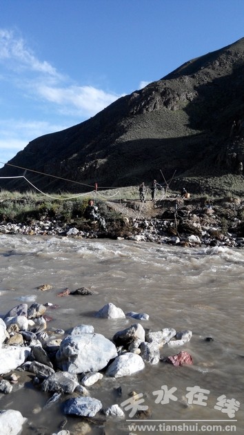做索吊過河布設(shè)電纜線 信號接收組在測量中