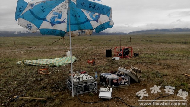 由于該項目地處祁連山腹地,海拔高,氣候惡虐,電法分隊在到達工作地的第二天,即開始精心作業(yè)。雖然初來乍到,分隊人員感覺頭暈缺氧,但遠處工地上的藍天、白云、雪山、草地及藏族同胞的笑容給弟兄們帶來了安慰。項目負責(zé)人鄧金航、技術(shù)負責(zé)閆兵兵安排部分高原反映較強烈的人員暫時休息,帶領(lǐng)部分高原反映不太強烈的人員去踏勘測量地點和尋找發(fā)射機位置,在甲方地質(zhì)人員的協(xié)助下,當(dāng)天完成了測量地點的踏勘工作和次日電法工作發(fā)射機位置的尋找任務(wù)。