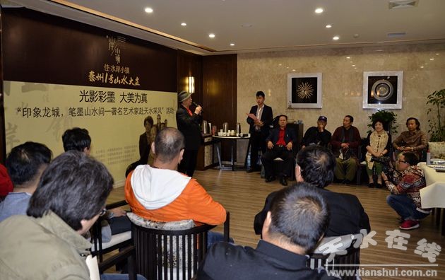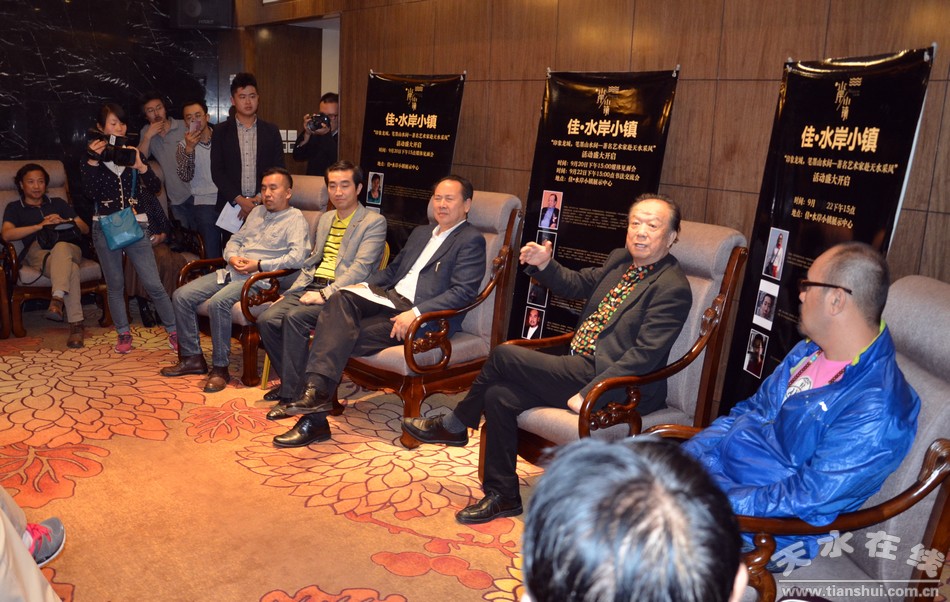 20日下午,著名導演李前寬、肖桂云、著名演員韓中、臧金生等出席了媒體見面會。會上,藝術(shù)家代表給大家介紹了此次活動的行程安排,提及22日將在佳•水岸小鎮(zhèn)展示中心現(xiàn)場進行即興創(chuàng)作。22日下午14點,16位來自書畫界和電影界的知名藝術(shù)家如約蒞臨佳•水岸小鎮(zhèn)展示中心,參觀了佳•水岸小鎮(zhèn),進行了現(xiàn)場即興創(chuàng)作,并與天水的筆友親切合影留念。
