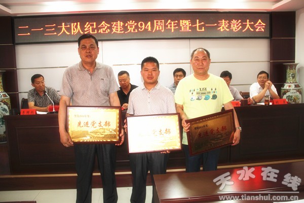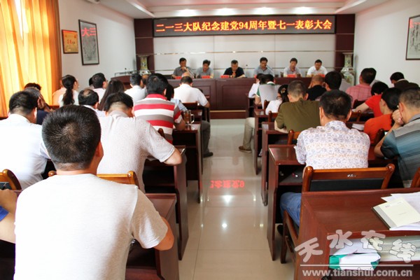 會議在莊嚴的《國歌》聲中開始。大隊長兼黨委負責人王正堂作了題為《緬懷黨史 克難奮進 勇于爭先 為順利完成大隊年度目標任務而不懈努力》的七一講話。王正堂與大家重溫了中國共產黨的成長歷史,要求全隊共產黨員自覺加強黨章黨史、理論政策的學習,牢固樹立馬克思主義的世界觀、人生觀、價值觀,堅定道路自信、理論自信、制度自信;要求全隊黨員干部,尤其是副科級以上領導干部要結合正在開展的“三嚴三實”專題教育,在深化“四風”整治上見實效,在守紀律講規(guī)矩、營造良好政治生態(tài)上見實效,在抓學習、抓作風、抓紀律、抓能力,保證上級黨組織和大隊黨政的重大決策部署落實為主要內容的“四抓一保證”活動上見實效;要求各單位做好形勢任務宣傳工作,黨支部書記要充分發(fā)揮“一崗雙責”職能作用,充分調動廣大共產黨員的先鋒模范和骨干帶頭作用,以好的干部作風,好的精神狀態(tài),推動大隊經濟持續(xù)發(fā)展。