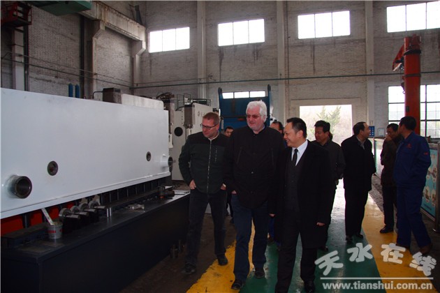 12月15日上午,原陜西省政協(xié)副主席劉世民,陜西省商務(wù)廳駐德國代表處總代表、德國陜西商會(huì)會(huì)長李奇,陜西商洛德祥機(jī)械制造股份有限公司總經(jīng)理李自祥,德國奧格?怂箼C(jī)械制造有限公司總經(jīng)理赫爾伯特·迪本等組成的德國陜西商會(huì)投資考察團(tuán)一行,在天水市委常委、副市長張明泰,市政協(xié)副主席安志宏,市招商局局長王燕,市工信委副主任辛國俊等一行的陪同下,深入到天水鍛壓機(jī)床(集團(tuán))有限公司調(diào)研,并進(jìn)行投資考察。
