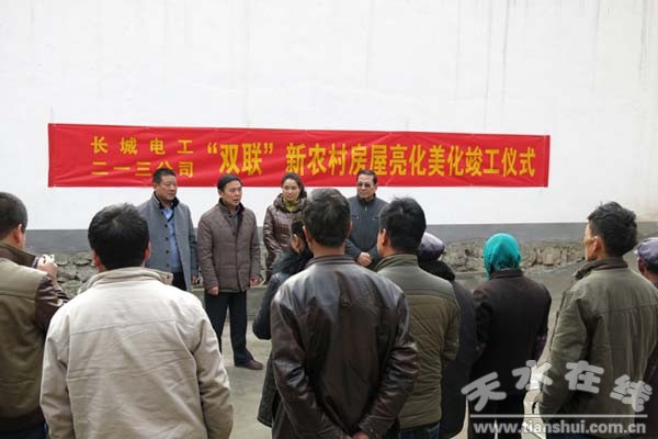 12月14日,長城電工在隴南市武都區(qū)龍壩鄉(xiāng)龍壩村舉行“雙聯(lián)”及精準扶貧新農(nóng)村建設(shè)房屋美化亮化工程竣工驗收儀式,標志著長城電工承擔(dān)的隴南市武都區(qū)及天水市2015年“雙聯(lián)”及精準扶貧項目全部如期完成。