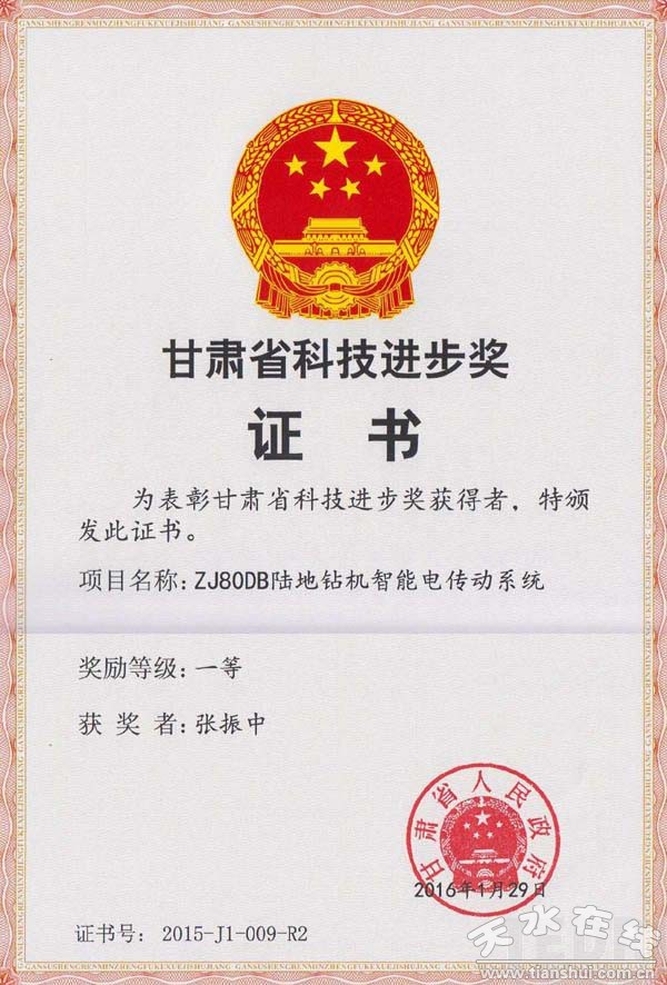 其中: 天水電氣傳動(dòng)研究所有限責(zé)任公司研制的ZJ80DB陸地鉆機(jī)智能電傳動(dòng)系統(tǒng),榮獲甘肅省科技進(jìn)步一等獎(jiǎng);天水長(zhǎng)城開(kāi)關(guān)廠有限公司研制的i-AY2A-18(Z)/T5000-63開(kāi)關(guān)設(shè)備,榮獲甘肅省科技進(jìn)步二等獎(jiǎng);天水二一三電器有限公司研制的GSC2-1000/1250、2000交流接觸器榮獲甘肅省科技進(jìn)步三等獎(jiǎng),磁保持電器鐵裝置榮獲2015年度甘肅省專利二等獎(jiǎng)。