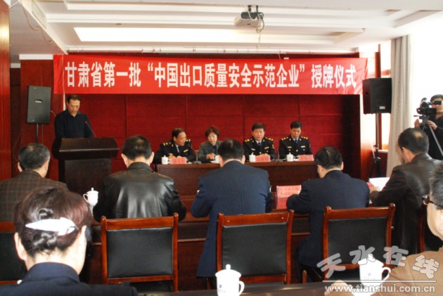 2月26日下午,甘肅省檢驗檢疫局在華天電子賓館9樓會議室召開表彰大會,為甘肅省榮獲第一批“中國出口質(zhì)量安全示范企業(yè)”的星火機床有限責任公司、華天科技股份有限公司兩家企業(yè)授牌。甘肅省檢驗檢疫局副局長高曉明、天水市副市長溫利平作了講話。天水市檢驗檢疫局局長梁斗生主持會議。