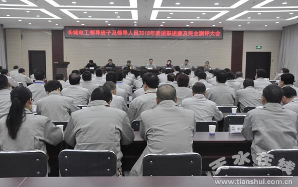 述職述廉大會在長城電工天水電工電器產(chǎn)業(yè)園辦公樓會議廳召開。