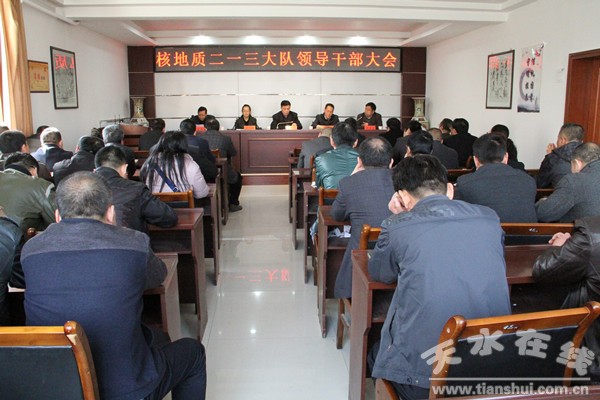 會(huì)上,省工信委組織人事處副處長(zhǎng)王玲宣讀了甘工信黨組【2016】13號(hào)文件精神:胡勇同志任甘肅省核地質(zhì)213大隊(duì)黨委書(shū)記,李國(guó)彪同志任甘肅省核地質(zhì)213大隊(duì)黨委副書(shū)記兼紀(jì)委書(shū)記,石有智同志任甘肅省核地質(zhì)213大隊(duì)副大隊(duì)長(zhǎng)。