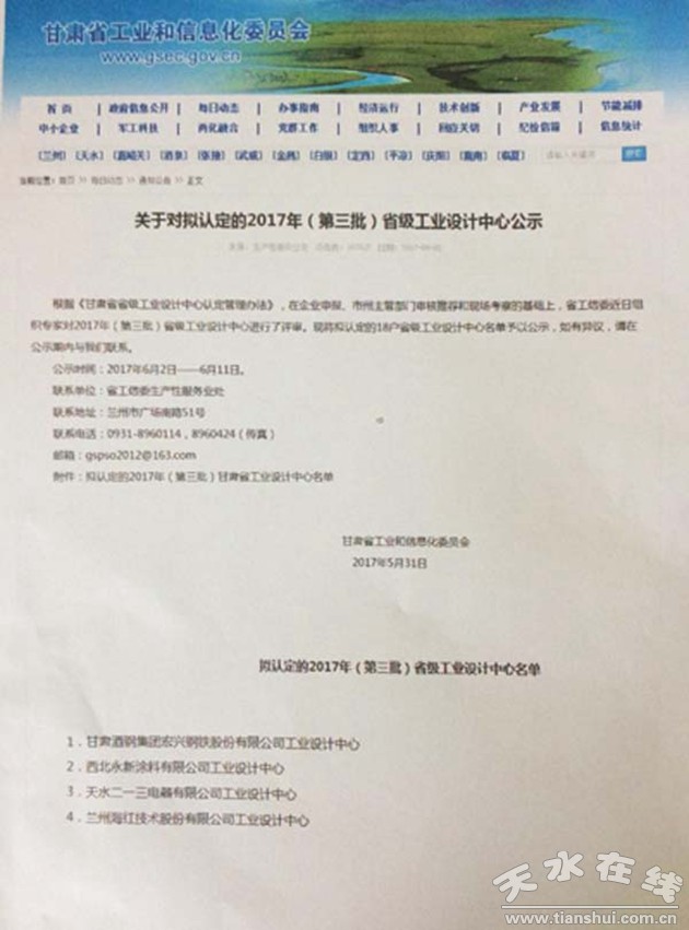 天水二一三電器有限公司工業(yè)設(shè)計中心被認(rèn)定為省級工業(yè)設(shè)計中心