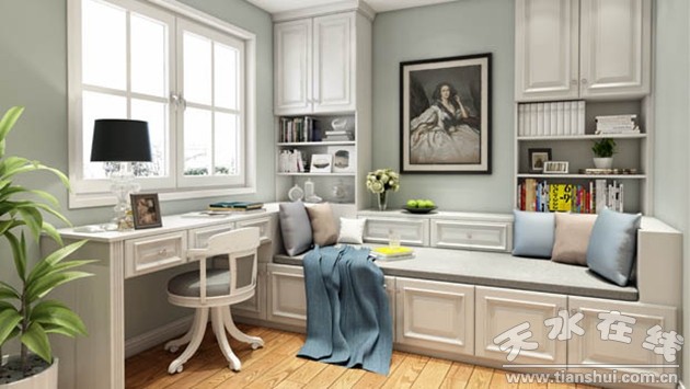 聯(lián)邦高登玲瓏玉白多功能房根據(jù)現(xiàn)代戶型特點(diǎn),充分利用窗邊的位置,打造一個(gè)舒適的閱讀角。榻榻米與書桌、書架一體化,極大地提高了空間的利用率。多功能房可以兼具書房、臨時(shí)客臥、接待室等多種功能,白色的柜體極具質(zhì)感,配上復(fù)古的掛畫和絲質(zhì)靠枕,慵懶的歐式輕奢風(fēng)情躍然“圖”上。