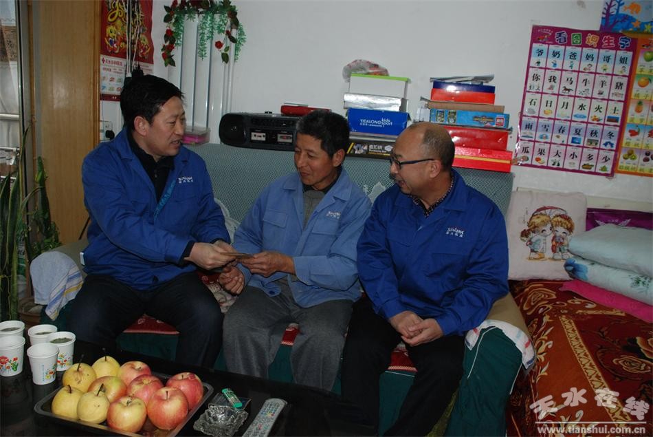 之后,公司領(lǐng)導(dǎo)前往星火家園,看望慰問市級(jí)以上勞模、離退休干部。來到全國勞模朱俊東家,劉勝、蔣俊感謝他為公司做出的貢獻(xiàn),并詢問其生活情況。在離休干部潘慶云、陳尚志家,兩位老干部緊緊握住公司領(lǐng)導(dǎo)的手,非常激動(dòng),感謝公司一如既往的關(guān)心。公司領(lǐng)導(dǎo)與他們拉家常,詢問其身體狀況、養(yǎng)老情況,并祝他們新春愉快、晚年安康。