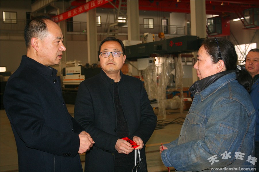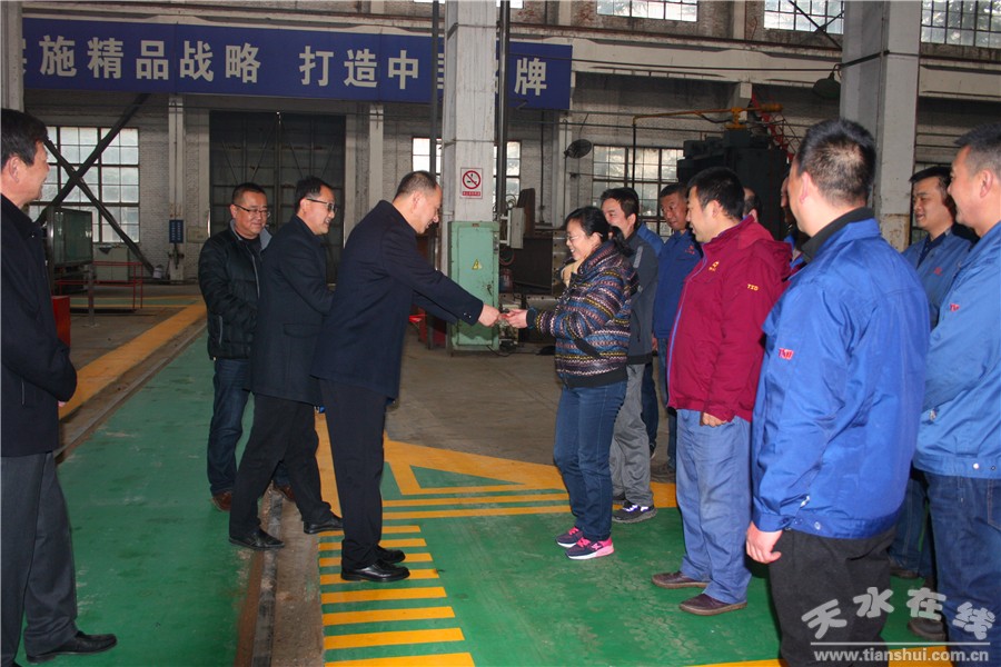 在第二聯(lián)合分廠高端基地,甘肅省五一巾幗獎(jiǎng)獲得者、天水工匠、道德模范、高級技師安琪正在手拿焊槍工作,公司領(lǐng)導(dǎo)向她打招呼,并且詢問情況,安琪激動(dòng)地說:“感謝各位領(lǐng)導(dǎo),大年初一也不忘我們,這讓我們更有信心,讓我相信離幸福生活更靠近一步。”第一聯(lián)合分廠女職工董文霞說:“為了2500T折彎機(jī),為了能按時(shí)交貨,為了夢想,為了幸福的生活,我們很樂意工作!