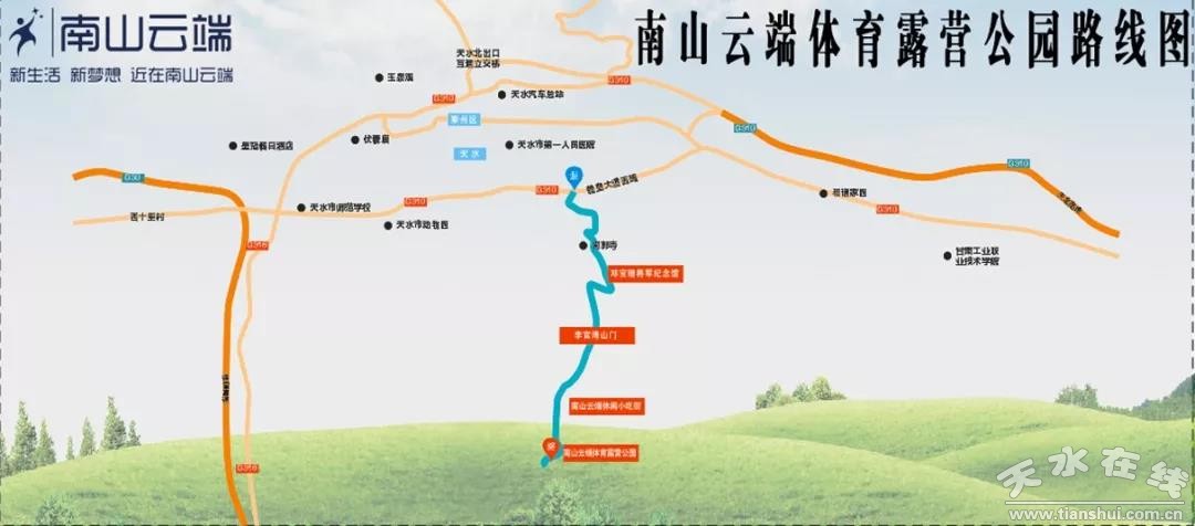 南山云端體育露營公園位于甘肅省天水市南郭寺上行5公里占地面積約450畝。露營公園是南山云端田園綜合體中重要項目之一,建設(shè)項目主要有房車營地、帳篷露營、親子樂園、水上樂園、孔雀花海、拓展訓(xùn)練、餐飲美食、特色小吃、草坪宴會、花;槎Y、越野賽車、真人CS、定點熱氣球、滑翔傘、滑雪場、戲雪場、滑草場、騎馬、射箭等項目。我公司將致力打造集休閑度假、觀光旅游、研學(xué)教育、體育賽事、文化活動于一體的綜合生態(tài)露營公園。