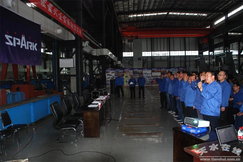 5月5日,星火公司召開“星火興亡,我的責任”質(zhì)量興企誓師動員大會。星火集團及星火機床公司領(lǐng)導蔣保權(quán)、劉勝、趙錦銘、鞠家兵、劉生玉、劉強、展海瑜,各處室領(lǐng)導、各分廠領(lǐng)導、班組長等骨干人員、計量檢查處全體員工240余人參加大會。星火集團黨委副書記、副總經(jīng)理蔣俊主持會議。