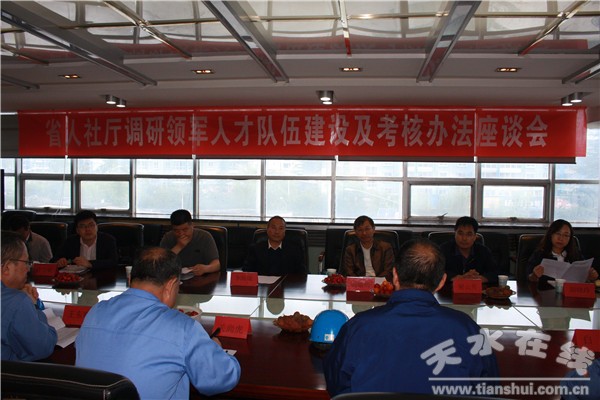 甘肅省人社廳黨組成員、副廳長閆敬明,省人社廳專技處副處長胡曉玲,省科技廳基礎(chǔ)研究(科技人才處)處處長梁云升,省工信廳人事處處長李靖紅,省科技技術(shù)情報研究所(省科技技術(shù)發(fā)展戰(zhàn)略研究院)所長、研究員杜英,省委組織部人才工作處干部許力斌,省人社廳專技處干部牛洪亮及其天水市人社局局長李海成和市委組織部人才科科長魏志剛等一行深入到天水鍛壓機床(集團)有限公司通過專題座談、聽取匯報、個別訪談等方式進行了調(diào)研,并廣泛聽取了天水鍛壓用人機制和領(lǐng)軍人才使用的寶貴意見。