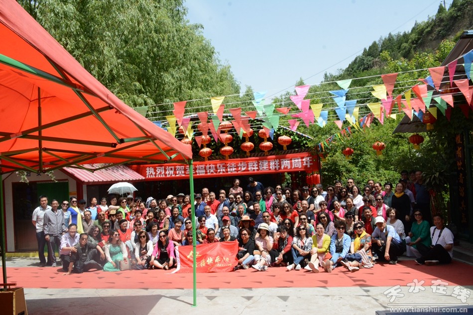 6月2日,天水市“幸福快樂戶外徒步群”建群兩周年慶;顒釉谔斐丶覉@農(nóng)家樂舉行。兩年來,該群共組織活動80余次。
