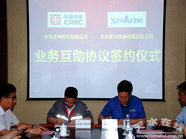 6月27日,星火機(jī)床公司與中車蘭州機(jī)車有限公司《業(yè)務(wù)互助協(xié)議》簽約儀式在蘭州舉行。甘肅省工信廳裝備處處長鞏朝陽,天水市委常委、副市長王洪義,副市長郝文杰,市工信局副局長吳來虎,中車蘭州機(jī)車有限黨委書記、董事長王旭東,總經(jīng)理周顏忠,副總經(jīng)理、財(cái)務(wù)總監(jiān)李長江;星火機(jī)床集團(tuán)公司黨委書記、董事長蔣保權(quán),總經(jīng)理劉勝,副總經(jīng)理、星火機(jī)床公司總經(jīng)理趙錦銘,星火機(jī)床集團(tuán)公司副總經(jīng)理、蘭機(jī)公司總經(jīng)理孫建華等參加簽約儀式。天水市原副市長、中車戚墅堰機(jī)車車輛工藝研究所有限公司副總經(jīng)理陳偉應(yīng)邀出席。