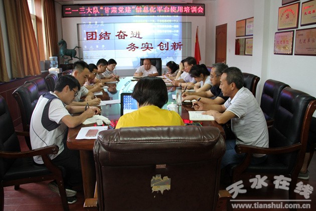 8月20日下午,省核地質(zhì)二一三大隊(duì)黨委召開(kāi)“甘肅黨建信息化平臺(tái)”使用培訓(xùn)會(huì)。副大隊(duì)長(zhǎng)孫明、政工辦負(fù)責(zé)人、各黨支部書(shū)記、大隊(duì)黨建信息化平臺(tái)管理員、各黨支部黨建信息化平臺(tái)管理員等參加了培訓(xùn)會(huì)。