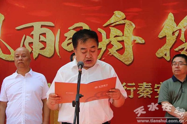 活動(dòng)中,天水分行主要負(fù)責(zé)人李晉致答謝辭,介紹了甘肅銀行的有關(guān)情況,向一直以來(lái)關(guān)心支持甘肅銀行秦安支行成長(zhǎng)發(fā)展的縣委縣政府、監(jiān)管部門(mén)和社會(huì)各界朋友表示了衷心的感謝,并表示甘肅銀行將以此為起點(diǎn),持續(xù)服務(wù)秦安地方經(jīng)濟(jì),銳意進(jìn)取,努力爭(zhēng)創(chuàng)秦安老百姓的首選銀行!