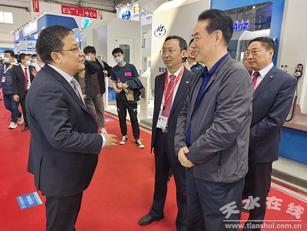 機(jī)床行業(yè)知名企業(yè)、濟(jì)南二機(jī)床集團(tuán)有限公司黨委書記、董事長張志剛也光臨星火機(jī)床展臺,星火機(jī)床集團(tuán)公司董事長蔣保權(quán)陪同參觀,詳細(xì)介紹了參展產(chǎn)品。