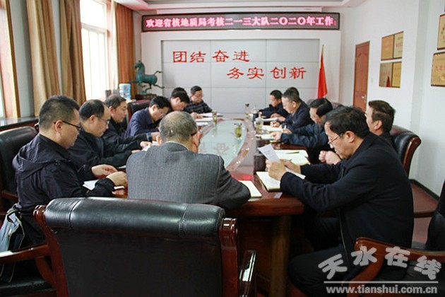 4月12日至14日,以省核地質(zhì)局局長(zhǎng)李岳為組長(zhǎng),總工程師張玉龍、副局長(zhǎng)左光智等7人為成員的考核組蒞臨省核地質(zhì)二一三大隊(duì)考核2020年生產(chǎn)經(jīng)營(yíng)、黨的建設(shè)、安全生產(chǎn)等工作。大隊(duì)領(lǐng)導(dǎo)和相關(guān)科室負(fù)責(zé)人參加了考核會(huì),張玉龍主持會(huì)議。二一三大隊(duì)副大隊(duì)長(zhǎng)石有智、黨委副書記李國(guó)彪、副大隊(duì)長(zhǎng)席甲平分別匯報(bào)了生產(chǎn)經(jīng)營(yíng)工作、黨建工作、安全生產(chǎn)工作。考核組分別在相關(guān)科室調(diào)閱資料、核對(duì)數(shù)據(jù),并到機(jī)械廠和建設(shè)公司進(jìn)行實(shí)地調(diào)研。