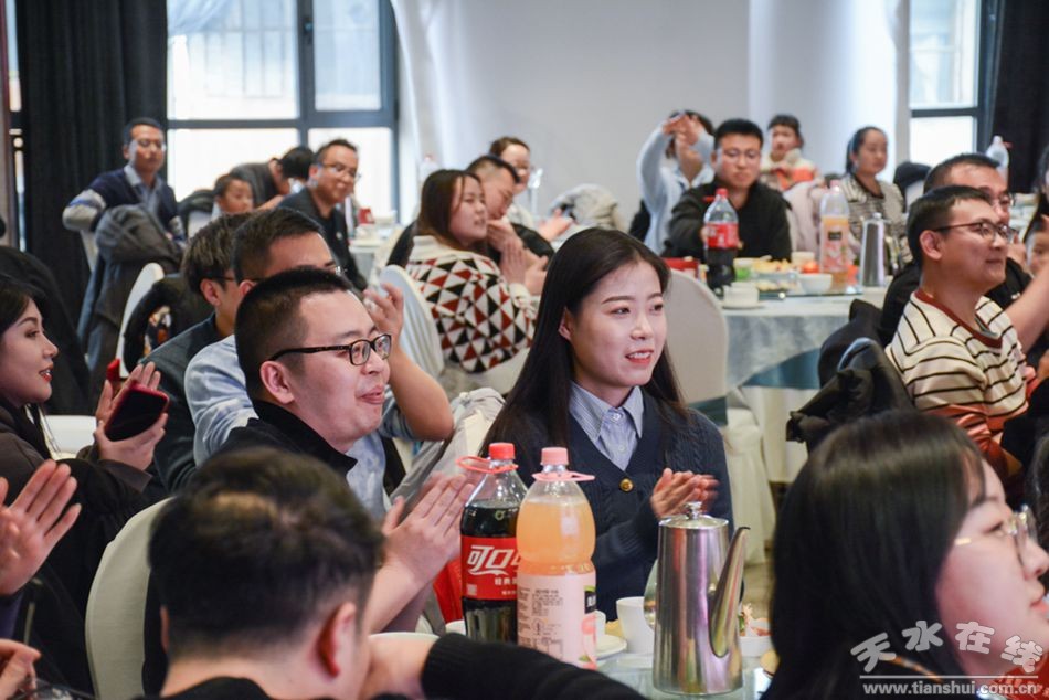 嚴(yán)肅認(rèn)真的環(huán)節(jié)完結(jié)后,睿陽(yáng)人開(kāi)始了精彩的節(jié)目演出。舞獅、歌曲、舞蹈、小品、古裝應(yīng)有盡有,掌聲不斷,現(xiàn)場(chǎng)氣氛熱烈,歡樂(lè)不斷。節(jié)目精彩的同時(shí),其他也不能少。游戲環(huán)節(jié)閃耀登場(chǎng),“心有靈犀”猜成語(yǔ)游戲逗得大家歡笑不止,將氣氛搞得非常歡樂(lè)。