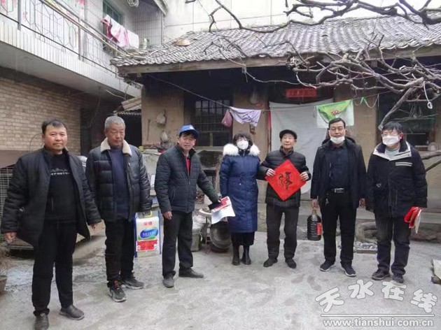 大年三十的早晨,雪花飄飄,在村委會(huì)陪同下,天水新育農(nóng)牧開發(fā)有限公司董事長(zhǎng)蒲寶貴、法人溫春會(huì)及毛曉春等人不畏寒冷路滑,走訪慰問(wèn)了溫集村40多戶高齡老人,向他們問(wèn)寒問(wèn)暖,并送上一幅幅代表新年祝福的“!弊趾鸵环莘莺裰氐奈繂(wèn)品。