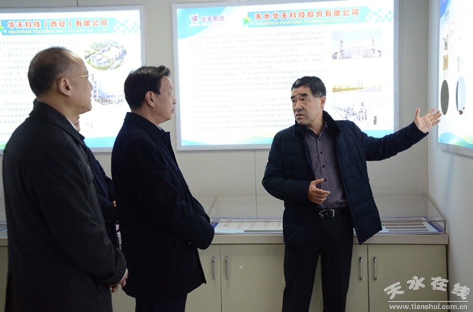 2月27日下午,甘肅省副省長(zhǎng)陳得信在天水市委副書記、市長(zhǎng)王國(guó)先和副市長(zhǎng)胡志勇、工信局局長(zhǎng)陳海龍、科技局局長(zhǎng)焦繼軍等領(lǐng)導(dǎo)的陪同下來(lái)華天調(diào)研。