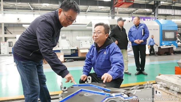 在星火機(jī)床公司裝配生產(chǎn)現(xiàn)場(chǎng),董全宏向李成昌一行詳細(xì)介紹了公司研發(fā)生產(chǎn)的高端數(shù)控纏繞機(jī)床、大型五軸聯(lián)動(dòng)車銑復(fù)合加工中心、數(shù)控斜床身機(jī)床以及船舶用超大直徑筒體加工專用機(jī)床等產(chǎn)品的特點(diǎn)、性能、應(yīng)用領(lǐng)域以及市場(chǎng)前景。