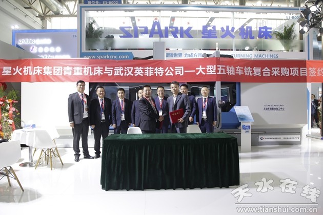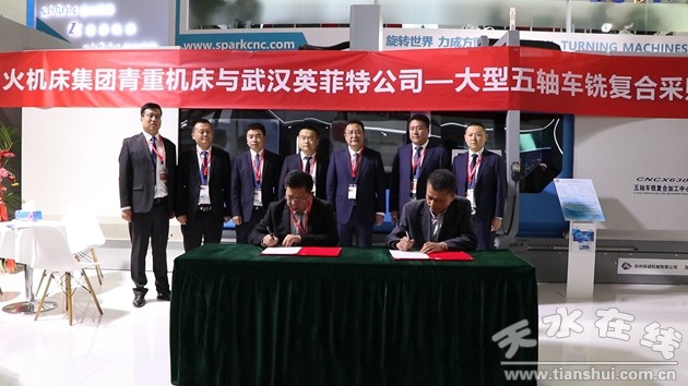 星火機床集團青重機床在展會現(xiàn)場與客商簽訂大型五軸車銑復(fù)合采購項目合同(圖)