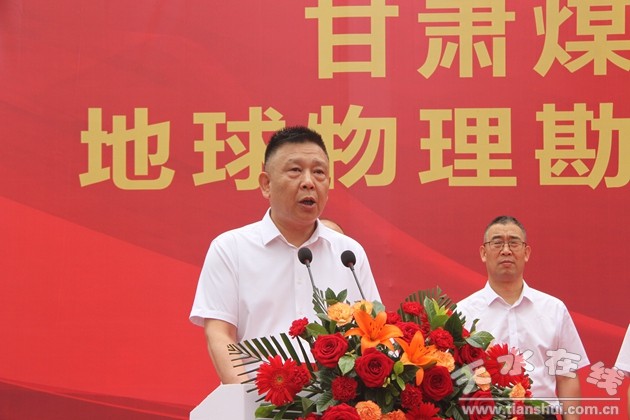 王永超作了講話,代表甘肅煤田地質(zhì)局向天水市各級政府和相關(guān)部門的大力支持表示誠摯的感謝,向普查隊干部職工表示衷心的祝賀,向為地球物理勘查科研基地建設付出辛勤努力的全體人士致以誠摯的問候和美好的祝愿。他表示,普查隊在建隊48年的光榮奮斗歷史中,全隊干部職工勇?lián)姑瑘F結(jié)奮進,充分發(fā)揮物探專業(yè)優(yōu)勢,連續(xù)攻克了戈壁沙漠區(qū)、巨厚黃土覆蓋區(qū)、卵礫石層分布區(qū)等物探技術(shù)難題,為地質(zhì)找礦靶區(qū)選取和勘查施工提供了堅強有力的技術(shù)支撐。建設地球物理勘查科研基地是甘肅煤田地質(zhì)局落實“強科技行動”的有力舉措,也是甘肅煤田地質(zhì)局一張嶄新的亮麗名片,對于改善綜合普查隊科研辦公環(huán)境、提升發(fā)展能力和推動高質(zhì)量發(fā)展意義重大,要進一步規(guī)劃好、建設好、管理好、運營好地球物理勘查科研基地。今年是甘肅煤田地質(zhì)局建局70周年,希望同志們認真學習貫徹習近平新時代中國特色社會主義思想,大力弘揚愛國奉獻、開拓創(chuàng)新、艱苦奮斗的優(yōu)良傳統(tǒng),全力投入新一輪找礦突破戰(zhàn)略行動,為保障國家能源資源安全、為全省經(jīng)濟社會高質(zhì)量發(fā)展作出新貢獻,奮力書寫地質(zhì)工作新篇章,并宣布普查隊地球物理勘查科研基地正式啟用。