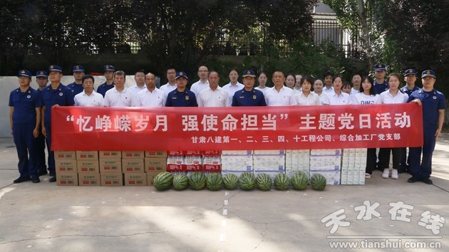 7月31日,甘肅八建基層黨支部聯(lián)合看望慰問長期奮戰(zhàn)在滅火和搶險救援一線的秦州區(qū)消防救援大隊工作人員。