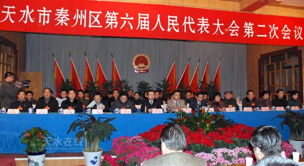 (秦州區(qū)委宣傳部 裴振剛,天水在線 丁建太 現(xiàn)場(chǎng)報(bào)道 )肩負(fù)莊嚴(yán)使命,承載現(xiàn)實(shí)任務(wù),履行神圣職責(zé)。2008年1月12日上午,天水市秦州區(qū)第六屆人民代表大會(huì)第二次會(huì)議隆重開幕。