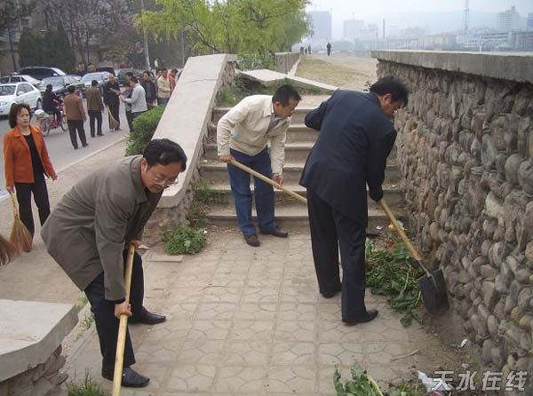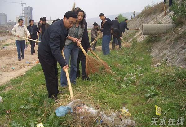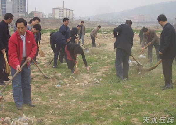 (秦州區(qū)委宣傳部 裴振剛)為了落實(shí)“三城聯(lián)創(chuàng)”會(huì)議精神,堅(jiān)持每周五社會(huì)衛(wèi)生日制度,4月18日,市委常委、秦州區(qū)委書記張健,區(qū)長(zhǎng)周偉及在家的區(qū)四大組織領(lǐng)導(dǎo)和機(jī)關(guān)干部及社區(qū)居民600多人開展了愛國(guó)衛(wèi)生運(yùn)動(dòng),對(duì)藉河南路東段的人行道、綠化帶及河堤和河床內(nèi)居民亂倒的生活垃圾進(jìn)行了清理,用實(shí)際行動(dòng)支持我市創(chuàng)建衛(wèi)生城市。
