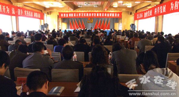 (秦州區(qū)委宣傳部 石蒼林)3月19日下午,市委深入學(xué)習(xí)實(shí)踐科學(xué)發(fā)展觀活動宣講報(bào)告團(tuán)赴秦州舉行科學(xué)發(fā)展觀專題報(bào)告會。