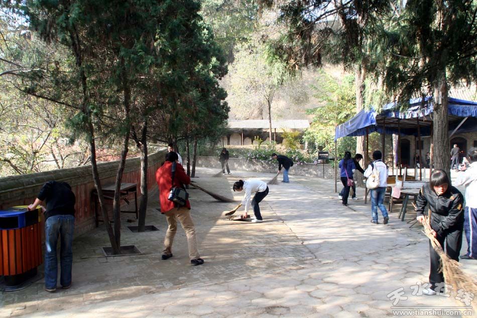 (來自天水師范學院的志愿者在打掃衛(wèi)生)