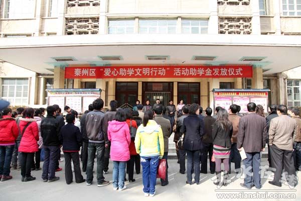(秦州區(qū)委宣傳部 裴振剛)2月5日下午,秦州區(qū)“愛心助學(xué)文明行動” 捐助儀式在區(qū)委大院隆重舉行。區(qū)委常委、宣傳部長舒健主持發(fā)放儀式。為了以實(shí)際行動踐行科學(xué)發(fā)展觀,大力弘揚(yáng)尊師重教、愛護(hù)人才的中華民族傳統(tǒng)美德,進(jìn)一步深化社會主義精神文明建設(shè),由秦州區(qū)委、區(qū)政府研究,經(jīng)過區(qū)委宣傳部,區(qū)文明辦的牽線搭橋,由該區(qū)53家文明單位和48名在校貧困大學(xué)生結(jié)成幫扶對子,在全區(qū)范圍內(nèi)開展“愛心助學(xué)文明行動”。在“愛心助學(xué)文明行動” 捐助儀式共發(fā)放愛心助學(xué)金18萬余元。