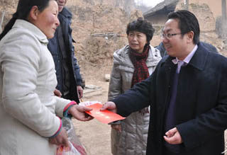 。ㄇ刂輩^(qū)外宣辦 彭高峰)1月24日,秦州區(qū)委副書記、區(qū)長周繼軍,區(qū)委常委、宣傳部長舒健,區(qū)人大常委會副主任胡秀玉,區(qū)政協(xié)副主席鐘綿邦帶領(lǐng)民政等相關(guān)部門負(fù)責(zé)人,先后深入藉口鎮(zhèn)四十鋪村、高磨村,秦嶺鄉(xiāng)關(guān)硯村、中心村等部分困難黨員、特困戶、殘疾人以及二女戶家中進(jìn)行慰問,為他們送去了慰問金、面粉、食用油等慰問品,并與他們親切交談,詳細(xì)了解了家庭生產(chǎn)、生活情況,向他們表示節(jié)日的問候。