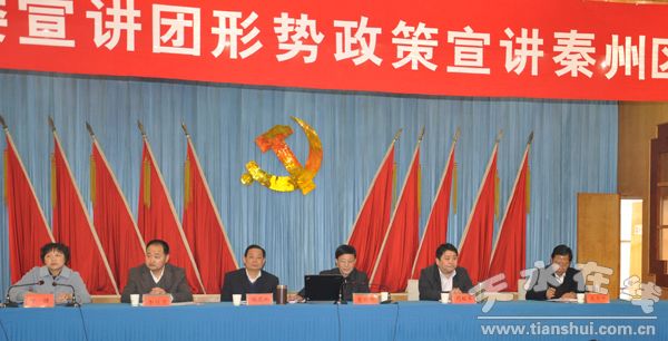 。ㄇ刂輩^(qū)外宣辦 彭高峰 劉可)4月2日,市委宣講團董世玉、李桂臣一行赴秦州作形勢政策宣講報告。