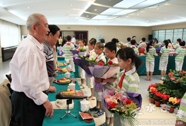 小朋友向老干部獻(xiàn)花