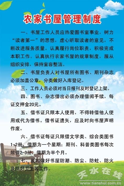 在工程實施過程中,該區(qū)堅持把建立長效機(jī)制作為鞏固建設(shè)成果的重中之重,突出抓好農(nóng)家書屋建設(shè)、管理、維護(hù)和使用四個環(huán)節(jié),重點抓好管理環(huán)節(jié),制訂了農(nóng)家書屋管理制度、管理員職責(zé)、圖書借閱等一系列規(guī)章制度,選配了一批文化層次較高、責(zé)任心強(qiáng)的專、兼職管理員進(jìn)行管理,關(guān)子、牡丹、太京等鄉(xiāng)鎮(zhèn)部分行政村安排老黨員、原村干部擔(dān)任管理人員,通過采取集中辦班和現(xiàn)場指導(dǎo)等形式,對農(nóng)家書屋專、兼職管理人員進(jìn)行業(yè)務(wù)培訓(xùn),使管理人員掌握必要的圖書分類、登記、保管和借閱等知識,不斷提高管理人員的管理能力和服務(wù)水平。同時,與各鄉(xiāng)鎮(zhèn)簽訂了《秦州區(qū)農(nóng)家書屋管理責(zé)任書》,下發(fā)了《關(guān)于進(jìn)一步加強(qiáng)農(nóng)家書屋管理的通知》,建立了監(jiān)管制度和督導(dǎo)制度,明確了農(nóng)家書屋國有資產(chǎn)管理責(zé)任和監(jiān)管部門,防止農(nóng)家書屋固定資產(chǎn)的流失。堅持把農(nóng)家書屋工程建設(shè)與文明村創(chuàng)建活動進(jìn)行同步考核,有效促進(jìn)了農(nóng)家書屋管理服務(wù)的規(guī)范,較好地發(fā)揮了農(nóng)家書屋在提高農(nóng)民科技文化素質(zhì),促進(jìn)農(nóng)村精神文明建設(shè)中的作用,推動農(nóng)家書屋規(guī)范化運行。
