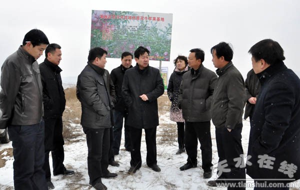在古集梁,張明泰一行冒著風雪對西漢水流域古集梁綜合開發(fā)項目實施情況進行了調(diào)研。該項目區(qū)覆蓋天水鎮(zhèn)的古集、青年、柴山、楊灣和汪川鎮(zhèn)的萬莊、斜坡、柏溝、杏樹共計2鄉(xiāng)鎮(zhèn)8村2449戶12180人,區(qū)域面積20平方公里。計劃2011年到2012年栽植蘋果2萬畝。張明泰要求,要充分調(diào)動廣大群眾的積極性,發(fā)揮好項目區(qū)農(nóng)民的主體作用,讓廣大村民積極投身到產(chǎn)業(yè)結(jié)構(gòu)調(diào)整當中去。農(nóng)工部、林業(yè)局等部門要在調(diào)動農(nóng)民轉(zhuǎn)變觀念上下功夫,通過組織培訓(xùn)、實地考察,提高群眾對種植果樹的認識和管理果園的水平;要扶持、培養(yǎng)一定的種植大戶、果樹專家,通過示范帶動,切實通過產(chǎn)業(yè)結(jié)構(gòu)調(diào)整帶動農(nóng)民增收致富。