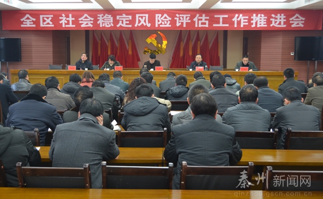 (秦州區(qū)委外宣辦 區(qū)委政法委 楊道東)1月9日上午,秦州區(qū)召開了社會穩(wěn)定評估工作推進會。會議的主要任務(wù)是貫徹落實黨的十八大精神和中央、省、市關(guān)于社會穩(wěn)定風(fēng)險評估工作的決策部署,分析當(dāng)前工作面臨的形勢,安排部署今后一個時期全區(qū)社會穩(wěn)定風(fēng)險評估工作。
