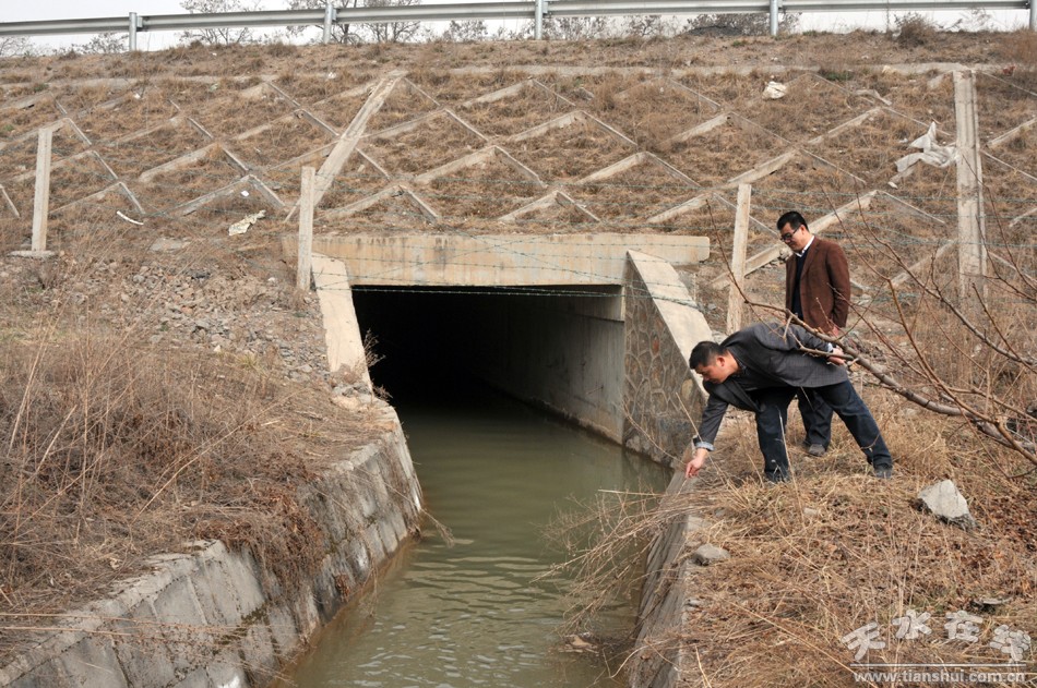 西川水務(wù)站工作人員在西干渠渠首檢查輸水情況