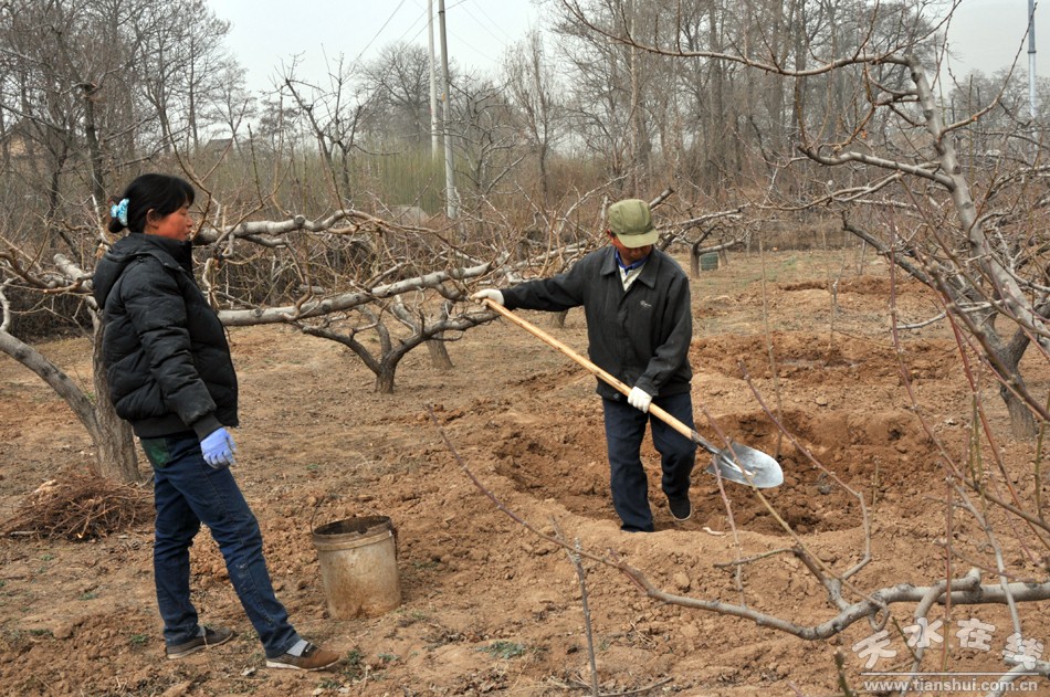 果農(nóng)利用春灌加緊進(jìn)行田間作業(yè)