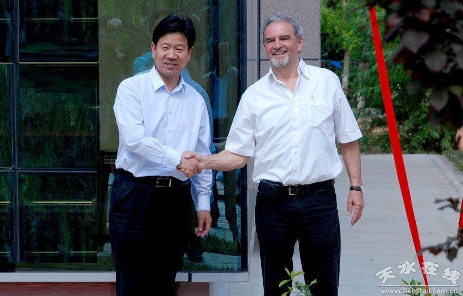 (天水市委常委、秦州區(qū)委書記張明泰與德國(guó)GFA咨詢公司首席顧問(wèn)胡波特•福斯特先生為教育中心落成揭牌)