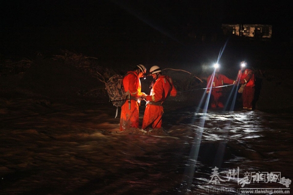 時間一分一秒流逝,降雨時大時小。如果再沒對策,群眾隨時都有危險。幾名戰(zhàn)士好幾次要跳下去。正在現場指揮救援的天水市委常委、秦州區(qū)委書記張明泰也焦急萬分,一遍又一遍打電話催促交通局長:“趕快調動挖掘機過來!
