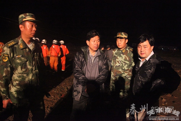 災情就是命令。天水消防支隊聞訊后,參謀長葉宏林立即調配消防官兵趕赴災區(qū)展開搜救。在岷縣連續(xù)奮戰(zhàn)三天三夜圓滿完成抗震救災任務的官兵也迅疾趕回。