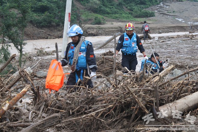 29日中午,我見到了滿身泥土匆匆返回指揮部復(fù)命的5名藍(lán)天隊(duì)員。隊(duì)員張廣瑞告訴我,他們于昨天下午3點(diǎn)多到達(dá)了李子園,在向長河繼續(xù)前進(jìn)的過程中,夜幕漸臨,前方道路情況不明,救援隊(duì)員不能再繼續(xù)深入。當(dāng)晚,5名隊(duì)員夜宿李子園。29日上午,隊(duì)員們在了解了情況之后,從李子園返回了指揮部。